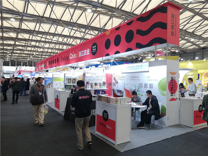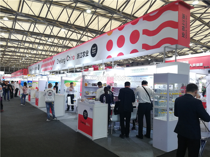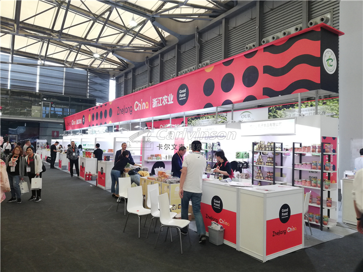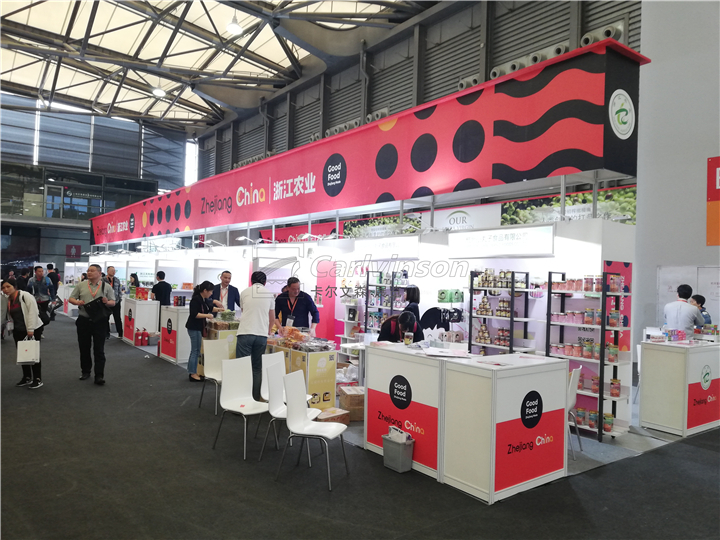各國(guó)各地市的團(tuán)展是中食展巨大規(guī)模的組成部分,歷屆展會(huì)中浙江展團(tuán)均有不俗表現(xiàn)。本屆展會(huì)浙江展團(tuán)的設(shè)計(jì)和搭建施工由卡爾文森展覽承接,共計(jì)600余平米、60余家企業(yè)?,F(xiàn)場(chǎng)效果整齊劃一、色彩艷麗、燈光明亮,現(xiàn)場(chǎng)響應(yīng)速度和做工質(zhì)量得到客戶認(rèn)可。