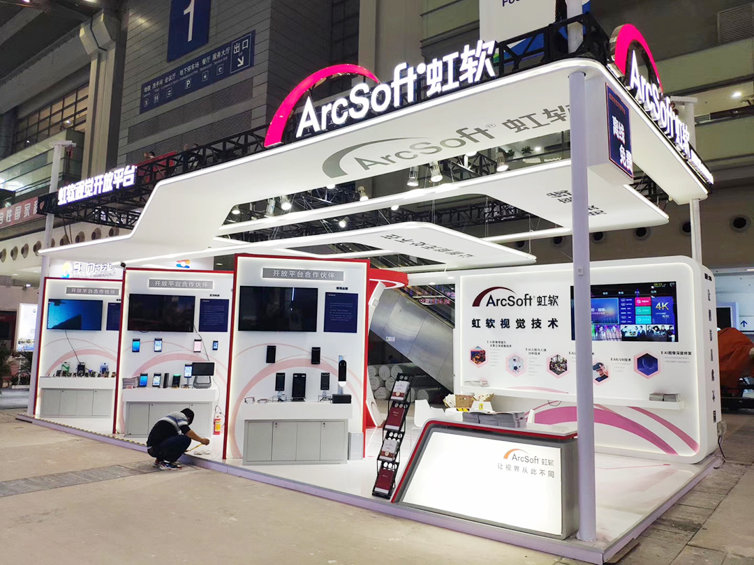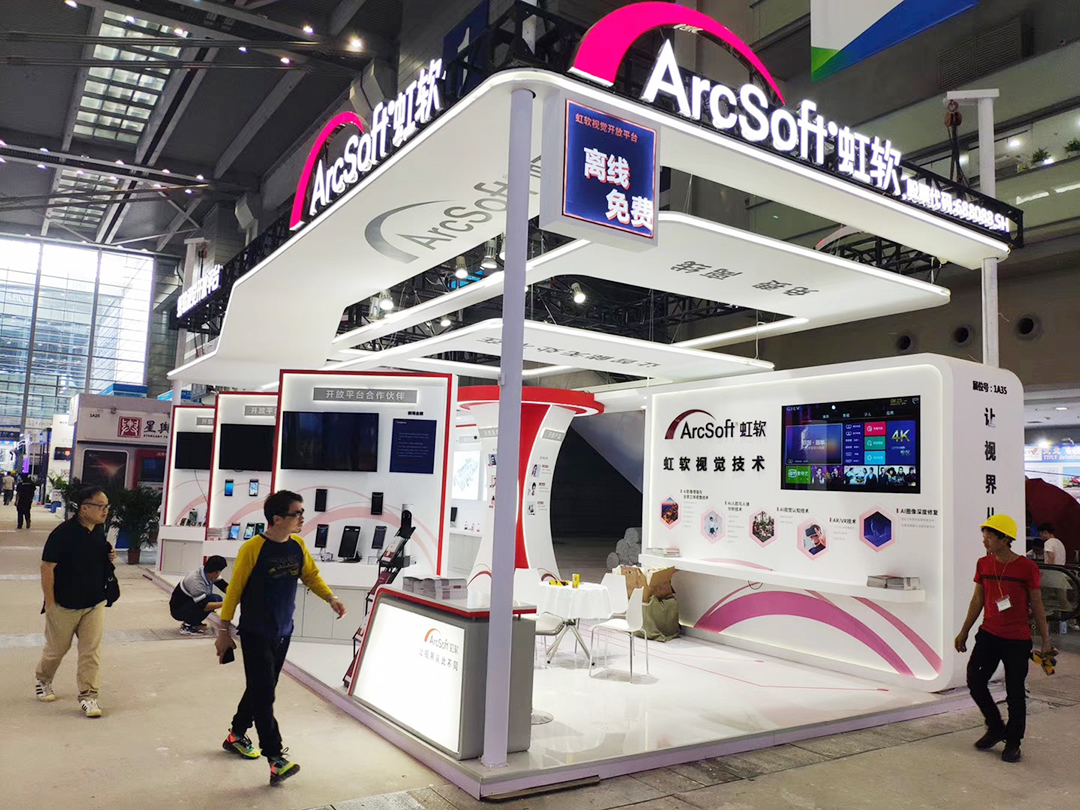 本屆展會上虹軟科技的視覺開放平臺在一號館大放異彩,并在浙江展團亮相了最新智能座艙視覺解決方案,讓現(xiàn)場觀眾近距離感受視覺AI技術在只能汽車領域的創(chuàng)新力??栁纳鳛檎古_供應商,為客戶設計展臺時結合客戶形象和產(chǎn)品特色,并憑借多年的展臺搭建經(jīng)驗,將展臺效果圖,完美的呈現(xiàn)在展會上,展示客戶的品牌形象。