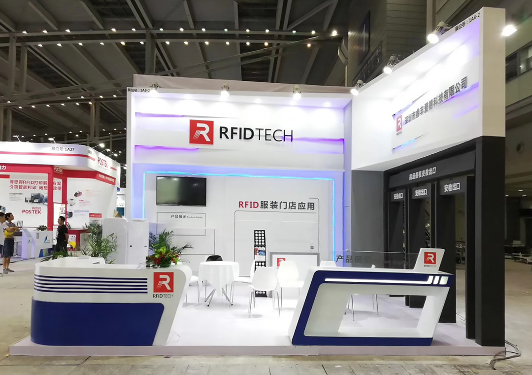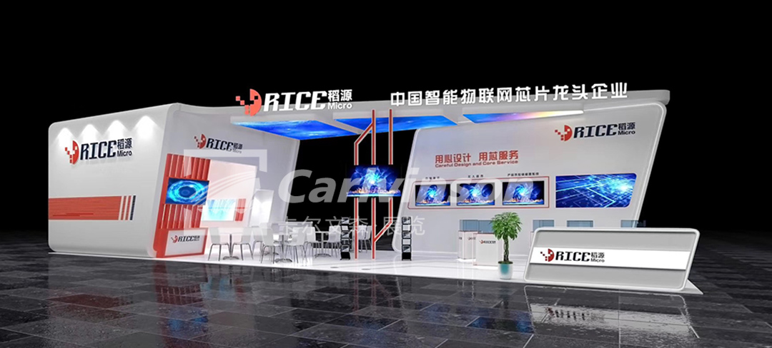 本屆展會(huì)卡爾文森為RFID產(chǎn)業(yè)鏈領(lǐng)域知名企業(yè)江蘇稻源微電子有限公司和深圳市睿豐愛(ài)德科技有限公司提供展臺(tái)設(shè)計(jì)搭建服務(wù)。稻源展臺(tái)結(jié)合企業(yè)形象特點(diǎn)和產(chǎn)品展示需求,設(shè)計(jì)的L型布局展臺(tái)更具獨(dú)創(chuàng)性,展臺(tái)開(kāi)面大,半開(kāi)放的洽談室造型與展臺(tái)背景展板以頂部造型相連,視覺(jué)上有一種“聚力向前”的沖擊力,極具動(dòng)感。